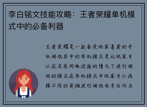 拳皇97手柄如何放技能 介绍 拳皇97是一款经典的格斗游戏,对于喜欢拳击和格斗的玩家来说,掌握拳皇97的技能是非常重要的。在游戏中,使用手柄放技能是玩家们常用的操作方式之一。本文将详细介绍拳皇97手柄...